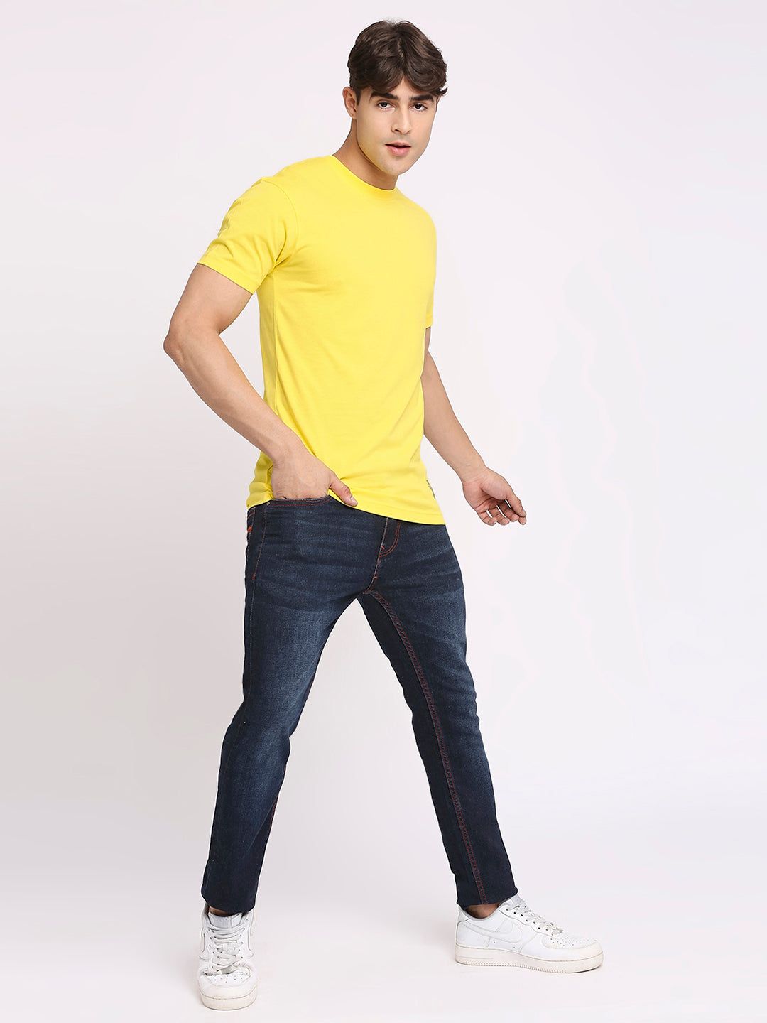 Be a ray of sunshine in the Frenchie Men's Yellow Round Neck T-Shirt! This stylish tee is perfect for adding a pop of color to the everyday; it's sure to become your go-to for feel-good vibes and a bright mood! Let your style shine brighter than the sun!