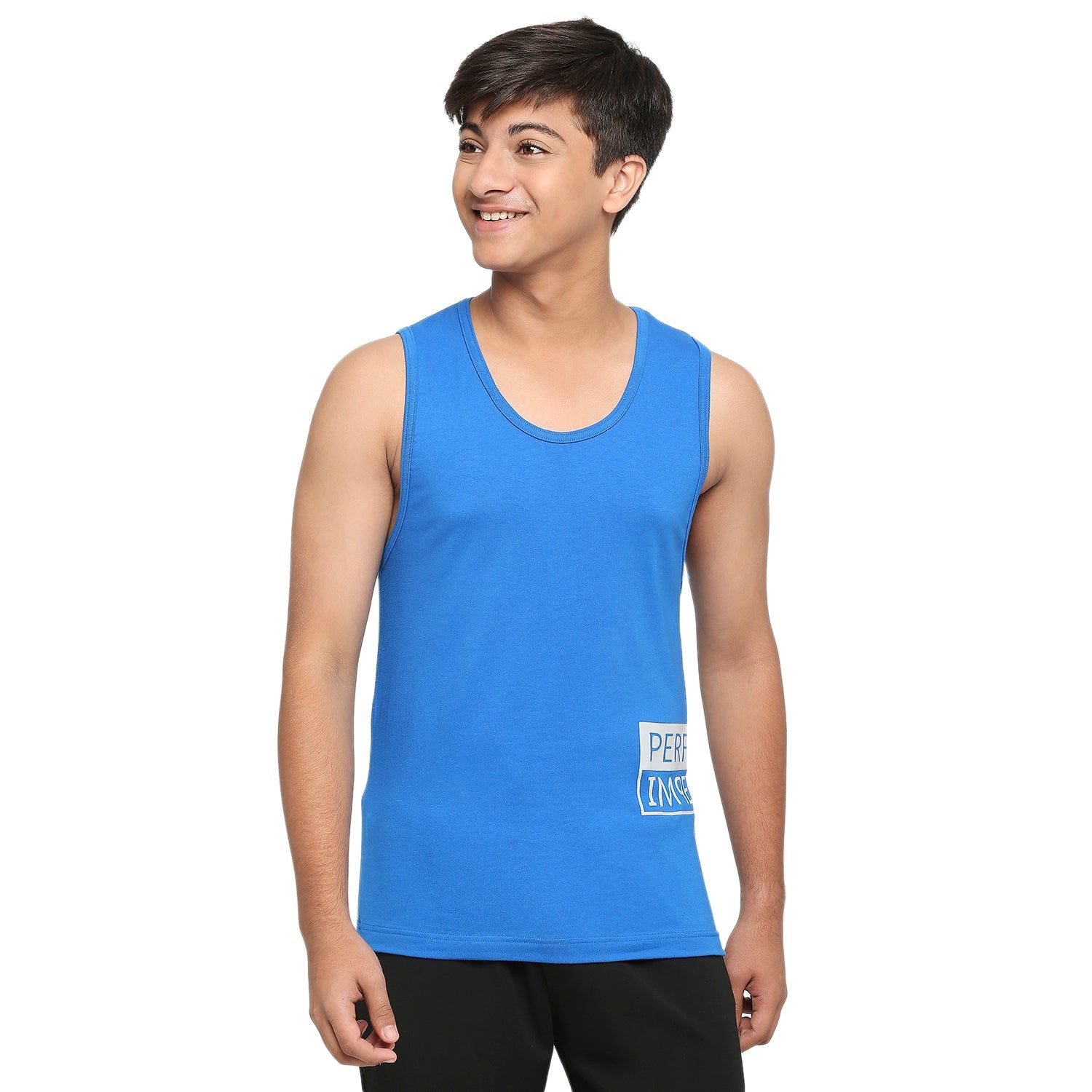 Don't be a drab dresser! Level up your wardrobe with this Frenchie U-19 Teens Blue Broadshoulder Vest and show off your style! Crafted from comfy Cotton Lycra Fabric, this vest will keep you looking good and feeling good. Put this on and wear it proud!