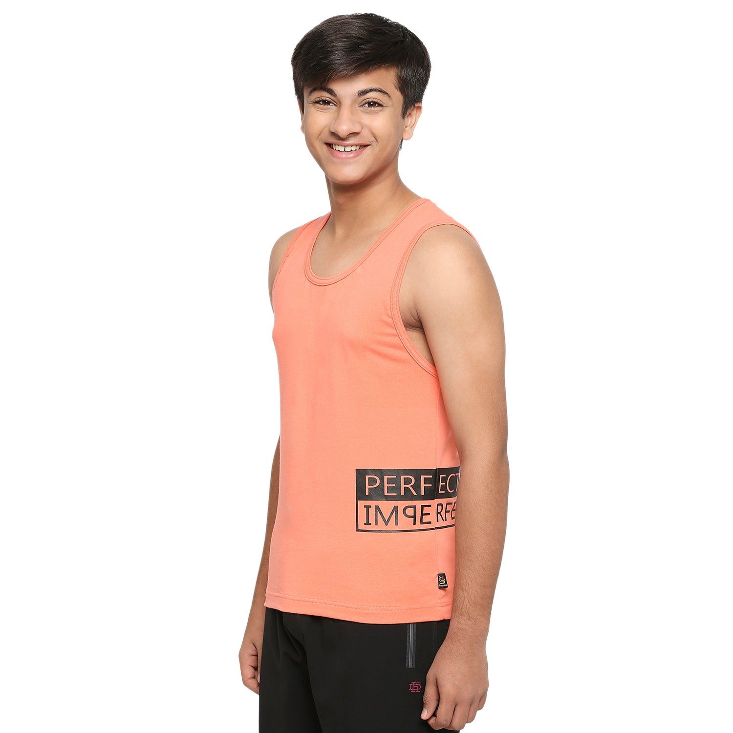 Be the envy of your peers with this stylish Frenchie U-19 Teens Peach Broadshoulder Vest. It's made from a soft, stretchy Cotton Lycra fabric, giving you a chic look without compromising on comfort. Your friends won't be able to keep their eyes off you!