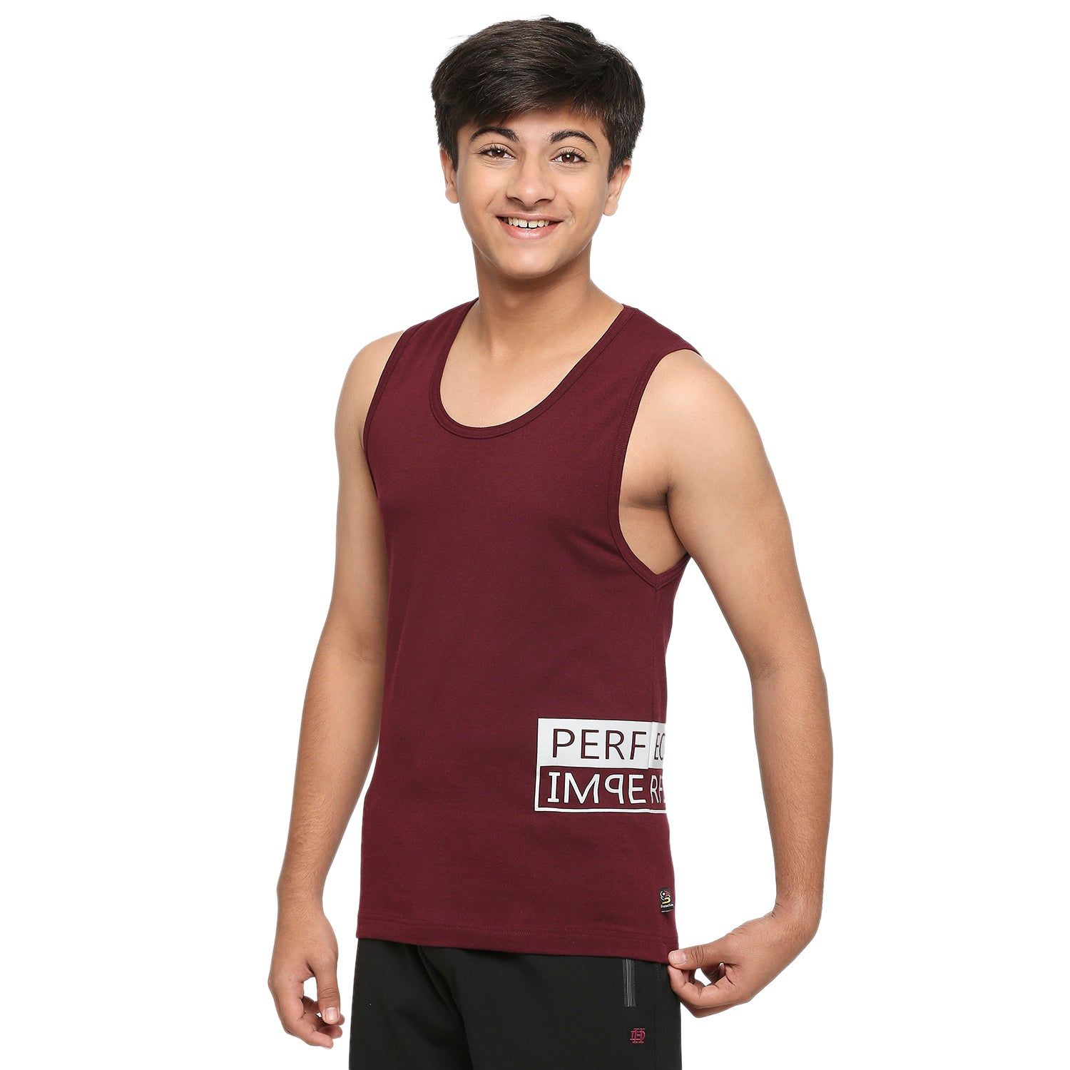 Show off your teensy-weensy fashionista style in this Frenchie U-19 Teens Wine Broadshoulder Vest! Crafted from ultra-soft Cotton Lycra fabric, it's sure to become a staple in your wardrobe that will last throughout the seasons. Now that's a win(e)!