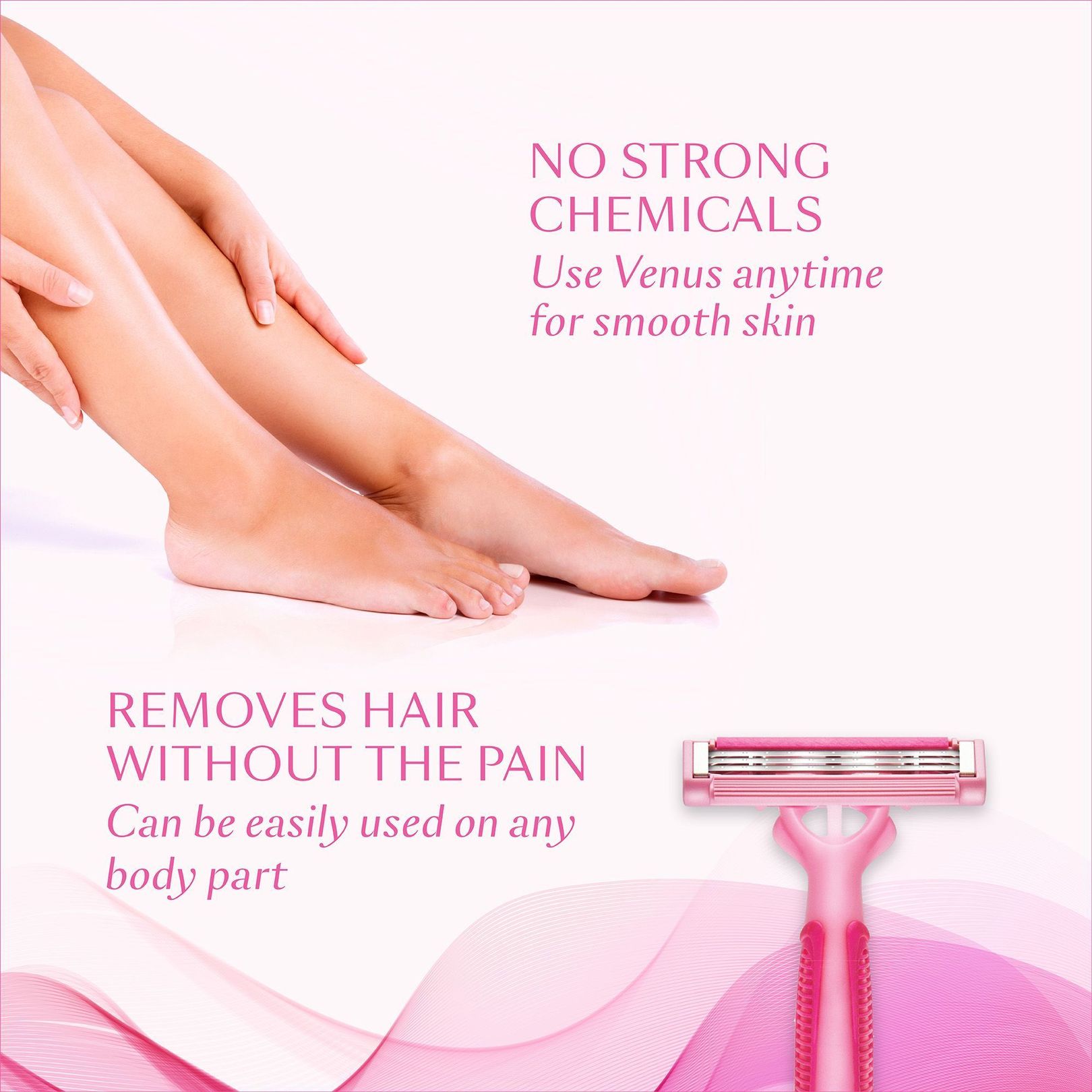 Designed as an easy to use hair removal razor for women, simply venus 3 use and throw disposable razors provide you easy hair removal and smooth skin . Simply apply water, glide venus razor against the direction of the hair growth and then wash and apply your favourite moisturizer. You can use simply venus 3 for hair removal for 3 weeks.This hair remover can be used by any woman/girl on face, arms, underarms, legs and full body including the sensitive bikini area.