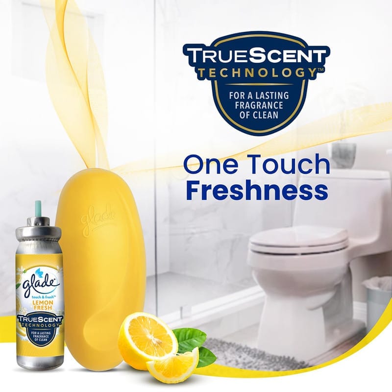 The Glade Touch and Fresh Aerosol Air Freshener is designed to deliver a burst of fragrance with just one touch. This compact and stylish fragrance dispenser comes with a 12ml refill that lasts up to 100 sprays, keeping your bathroom fresh and inviting every time.