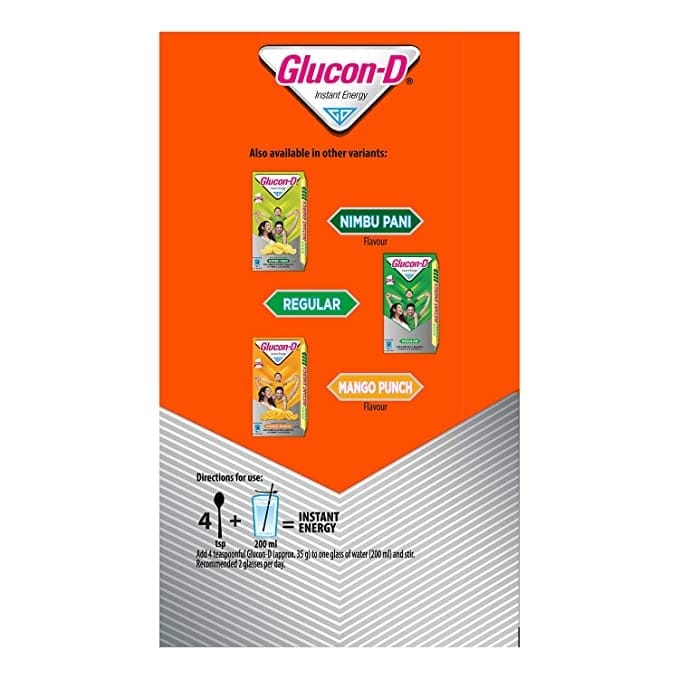 Summers can be daunting and especially when there's an enormous scorching sun always ready to drain out your energy and stop you from being the best of you. But thank god there is Glucon-D! Glucon-D contains glucose that helps replenish body glucose and fills you with the energy required to stay active. It is easily absorbed by the body, thus giving out an instant energy boost and refreshment. Enriched with Vitamin-C and Minerals, including Calcium and Phosphorus, this glucose drink helps charge you up to fight tiredness and promotes mental alertness. What's better? Added Orange flavour makes it loved by children as well as adults. Add Glucon-D to a glass of water every day to provide growing active children the energy that keeps them going and adults, refreshment after a long day.
