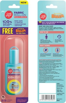 Goodknight Fabric Roll-On is an easy-to-use personal mosquito repellent, made using 100% natural and plant-based ingredients such as Citronella and Eucalyptus oil. Its unique non-staining formulation ensures your clothes are not stained after use. It provides complete protection for up to 8 hrs from all kinds of mosquitoes including those spreading Dengue, Malaria & Chikungunya. Goodknight Fabric Roll-On is certified by Paediatricians and is absolutely safe for babies and children of all age groups.3263