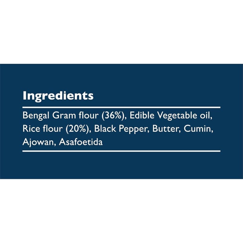 Gram flour, spices, salt, and other natural ingredients.