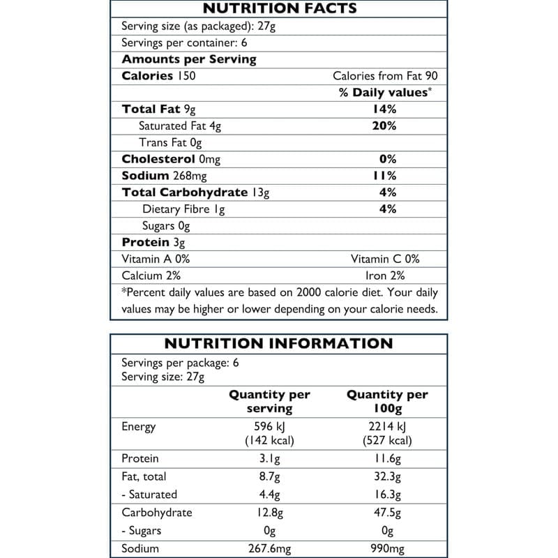 Check the packaging for detailed nutritional values per serving.