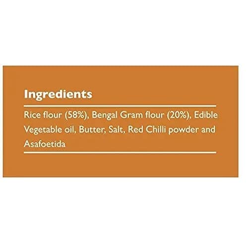 Rice Flour, Gram Flour, Edible Oil, Red Chilli Powder, Salt, Asafoetida, and Curry Leaves.
