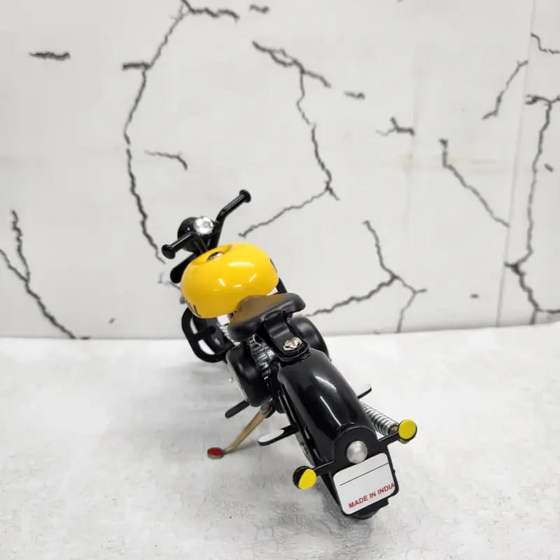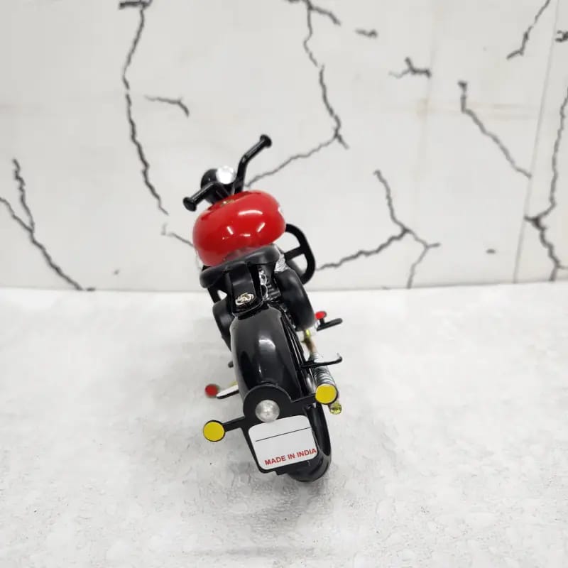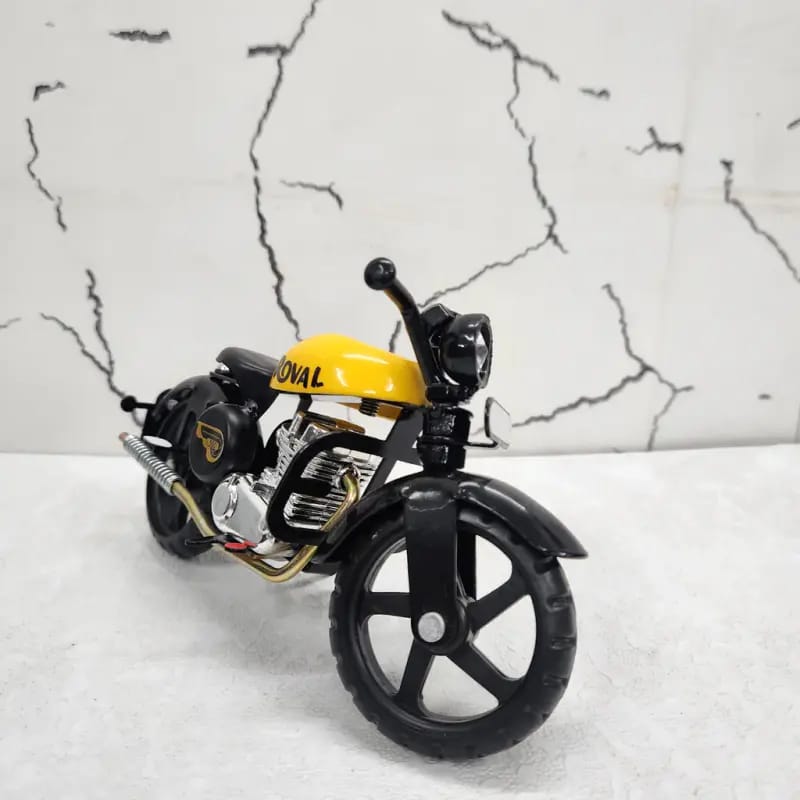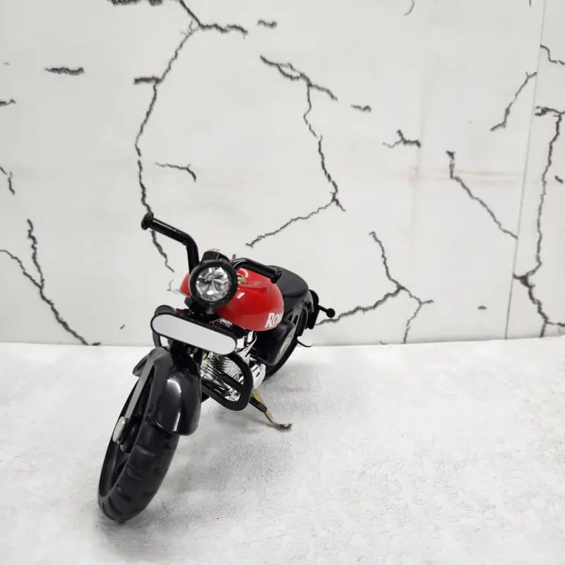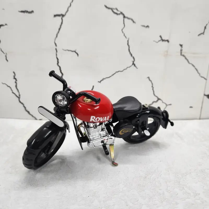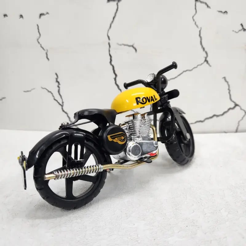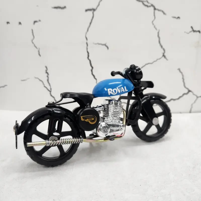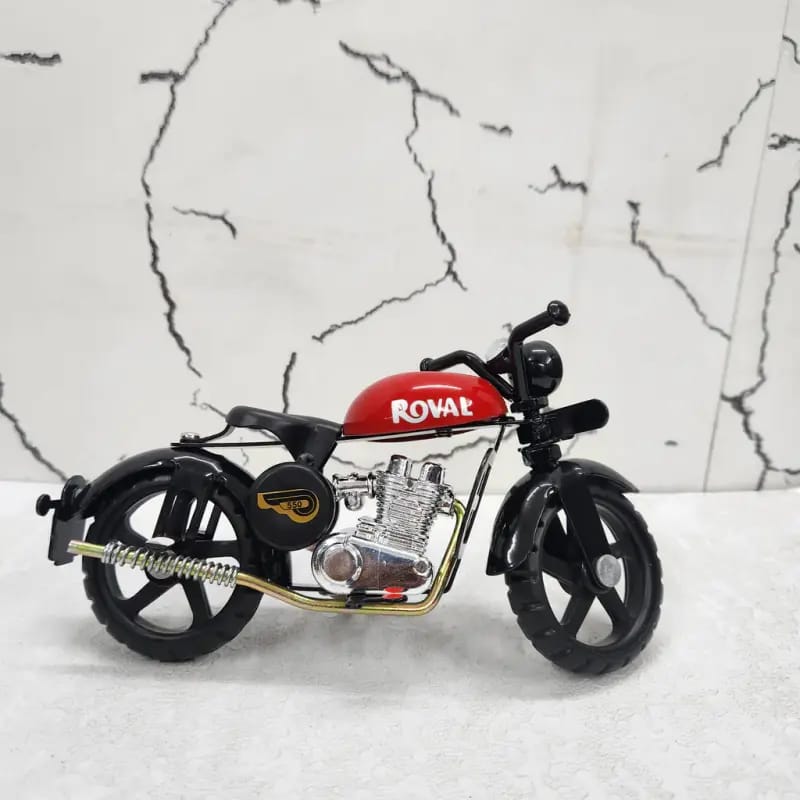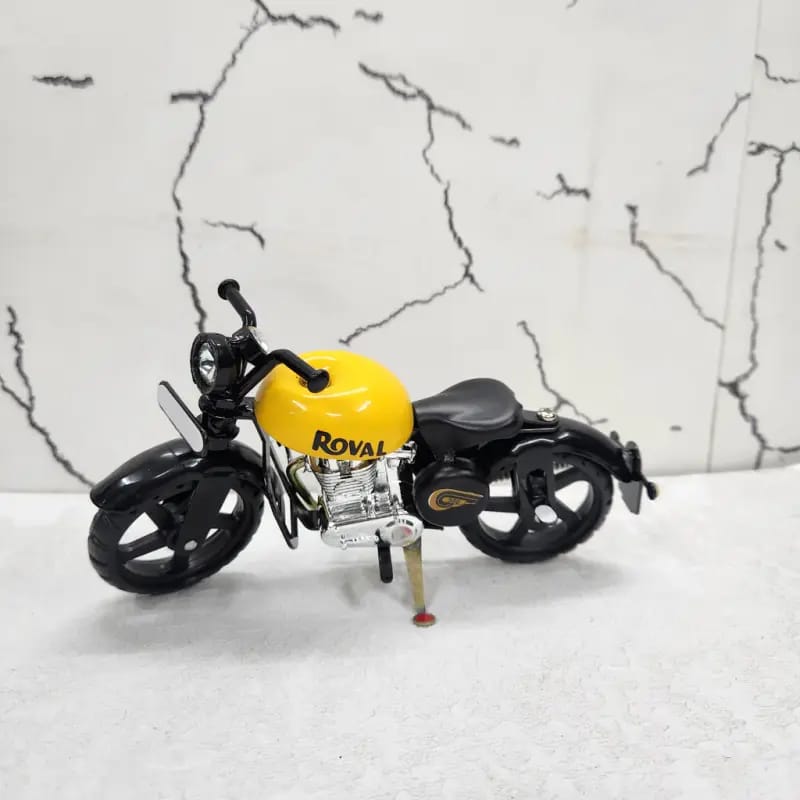 This Heavy Quality Metal Royal Bike Toy is a perfect miniature for bike enthusiasts, collectors, and children alike. Made from premium metal, this toy is built to last and provides a realistic and stylish representation of a royal bike. The colors vary based on stock availability, ensuring a unique and exciting surprise!