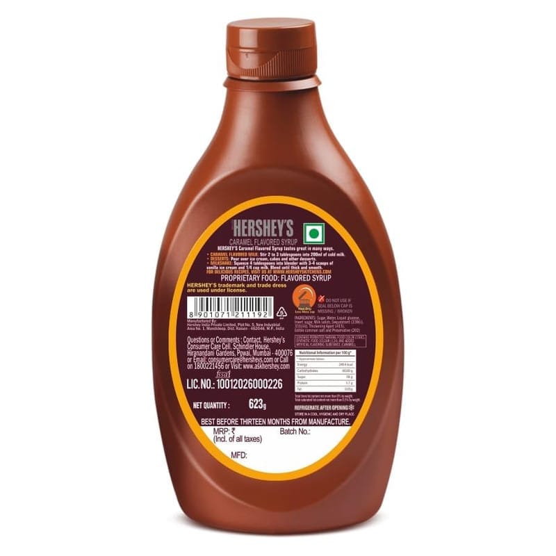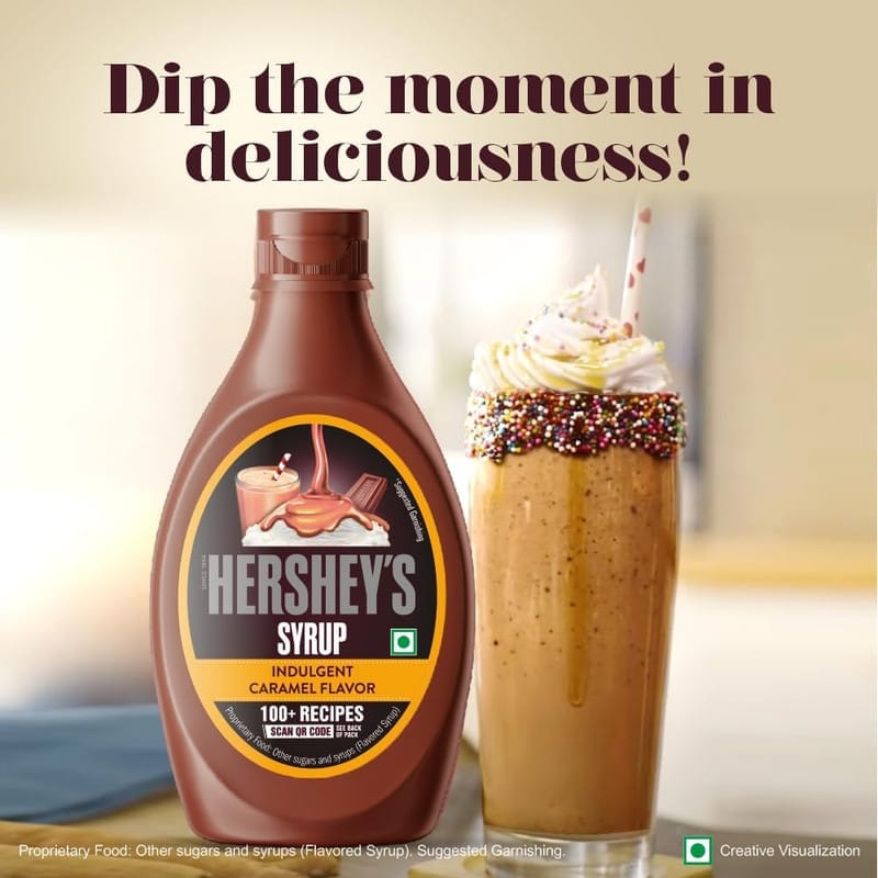Nothing says sweet like the classic taste of HERSHEY S SYRUP, which comes in an easy squeeze bottle. Drizzle it over any ice cream, to a glass of milk, pancake or waffles and so much more! Add the perfect twist to your dishes with a genuine rich chocolate flavor that goes brilliantly with everything! Choose over 100+ Recipes, exclusively curated by Chef Ranveer Brar! A delicious twist to all recipes to create moments of goodness and deliciousness with your family. Made with high quality ingredients HERSHEY S Syrup is smooth and has the right consistency that is perfect to drizzle.1071-21119-008