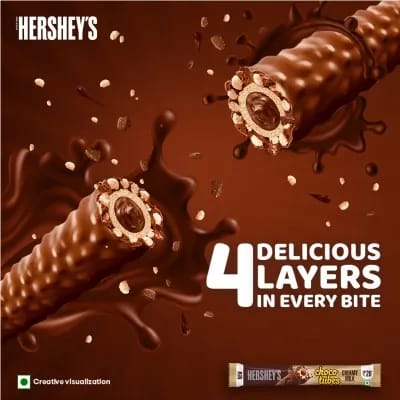 Dive into a world of indulgence:Enjoy 4 Delicious Layers in Every Bite with HERSHEY'S. Perfect for sharing: A long chocolatey wafer-based tube to bite into, share and relish, HERSHEY'S Chocotubes is a perfect anytime treat to share with family and friends. Available in two variants - Creamy Milk and Cookies 'n' Creme A delicious & Crunchy Twist:A crunchy, wafer-tube, filled with a chocolatey delight and layered with smooth creamy deliciousness. Topped with a crunch crunch that will make you go WoW!