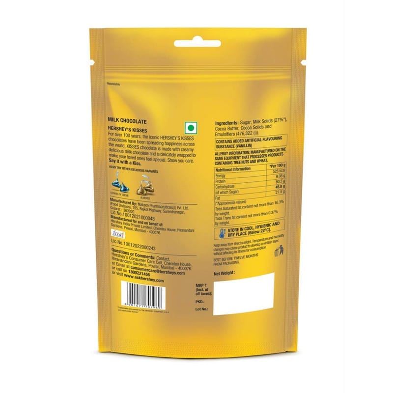 Dive into a world of indulgence:Indulge in irresistible classic, creamy milk chocolate with HERSHEY'S KISSES Milk Chocolate. Perfect bite-sized chocolates in 5 delectable flavors.Perfect for sharing: Melt-in-mouth, delicious chocolates that are individually wrapped to make your loved ones feel special.Made to express: HERSHEY'S KISSES is the perfect partner to make your loved ones feel special. When words fall short. Say It with a Kiss! Comes in bite-sized, individually wrapped units to help make sharing and consumption easier and fun.A delicious and creamy twist:Great for sharing with friends and family; made with creamy delicious milk chocolate. Suitable for vegetarians and a great choice for anyone who loves delicious, melt-in-mouth chocolates.