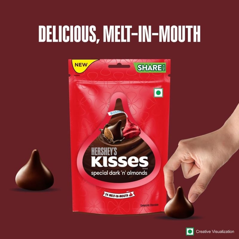 Enjoy melt-in-mouth chocolates that are perfect bite-sized chocolates in 5 delectable flavors. Perfect for sharing, HERSHEY S Kisses are delicious chocolates that are individually wrapped to make your loved ones feel special. Great for sharing with friends and family; made with delicious chocolate. Suitable for vegetarians and a great choice for anyone who loves delicious, melt-in-mouth chocolates.1071-70449-003