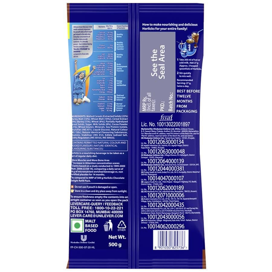 Horlicks is a Health Drink that has nutrients to support immunity Horlicks is clinically proven to improve 5 signs of growth and is clinically proven to make kids taller, stronger and sharper. Horlicks is scientifically proven to improve the power of milk Horlicks is now available in 4 exciting and yummy flavors - Classic malt, Chocolate, Elaichi, Kesar Badam Enjoy with a cup of hot milk or a glass of cold milk Horlicks is a leading force in the Science of Food Horlicks has Bio-Available Nutrients meaning Nutrients More Available for Growth. These get absorbed in the blood and are carried to all parts of the body Horlicks contains 9 nutrients (Vit B6, B12, C, D, Copper, Folic Acid, Iron, Selenium and Zinc) which are scientifically proven to support immunity Increases the density of minerals such as^ calcium in bones to give children bigger and stronger bones Horlicks is clinically proven to increase lean tissue, making children stronger Helps improve attention and concentration to make your child sharper Horlicks is clinically proven for more haemopoietic nutrients in the blood Healthier Blood refers to improvement in the levels of blood health-related nutrients (Vitamin A & Folate) in circulation Horlicks is clinically proven to increase fat-free mass, making child stronger