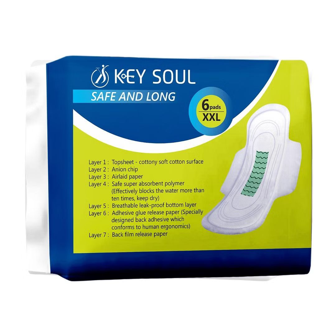 Key Soul Safe and Long is a 6 pc pack sanitary napkin with an anion chip and 7 layer protection. It has super absorbent power and comfort all day and night.