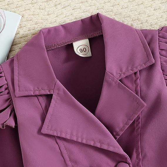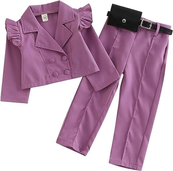 Kids Girls Clothes Set Girl Blazer Suit Long Sleeve Ruffle Button Jacket Blazers Tops High Waist Casual Pants with Belt Bag (Purple)