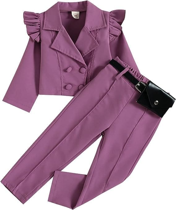 64e5a66362404b27ffc39f72Kids Girls Clothes Set Girl Blazer Suit Long Sleeve Ruffle Button Jacket Blazers Tops High Waist Casual Pants with Belt Bag (Purple)Kids Girls Clothes Set Girl Blazer Suit Long Sleeve Ruffle Button Jacket Blazers Tops High Waist Casual Pants with Belt Bag (Purple)