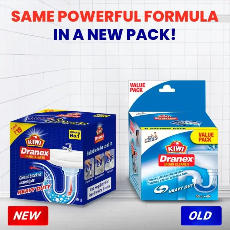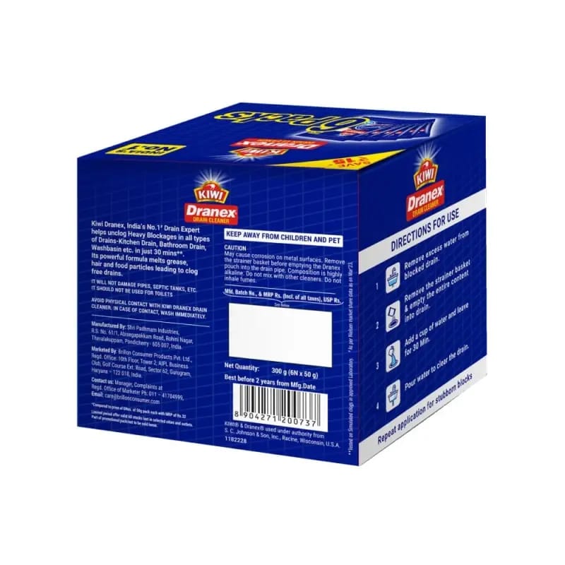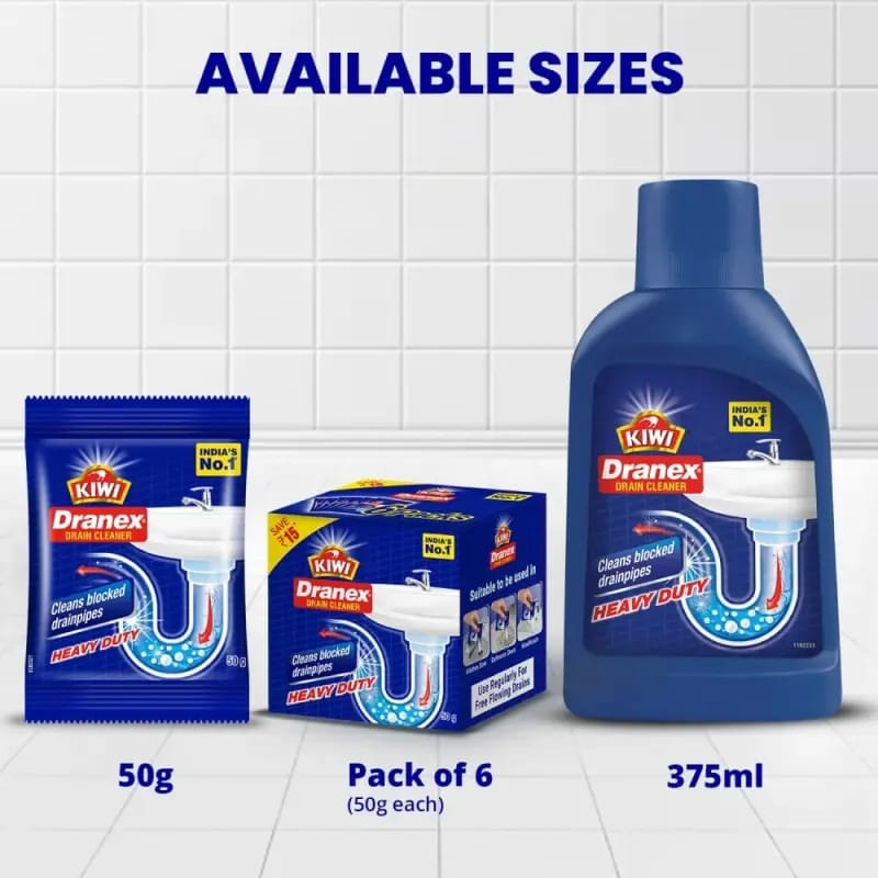 Kiwi Dranex Drain Cleaner Powder is a fast-acting solution specially designed to remove tough clogs and blockages in washbasins, sinks, pipes, and even septic tanks. It works in just 30 minutes, dissolving grease, hair, and other debris to restore smooth drainage.