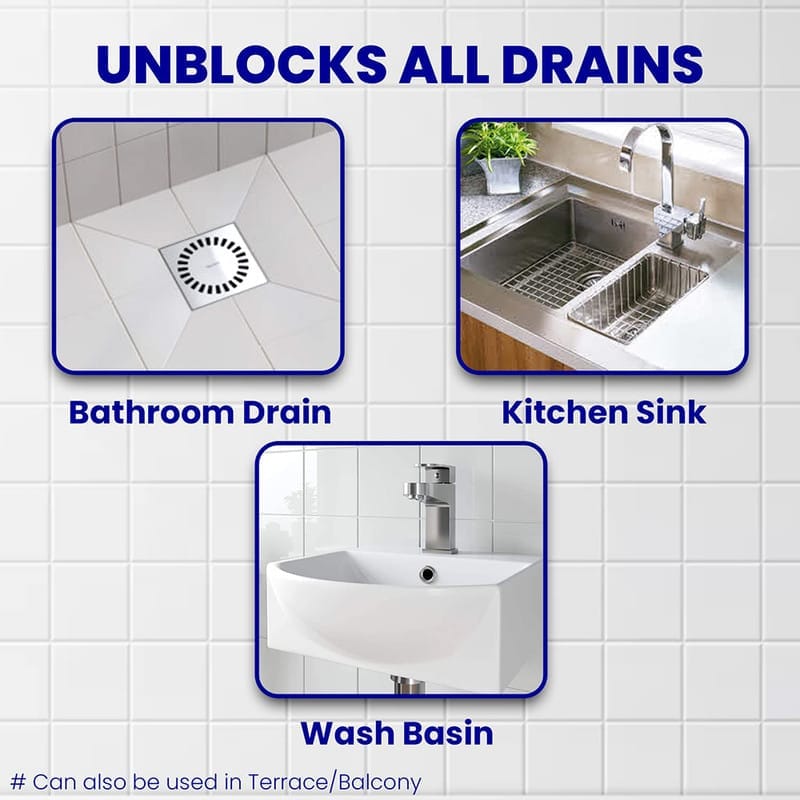 • Effective on washbasins, kitchen sinks, bathroom drains, and pipes