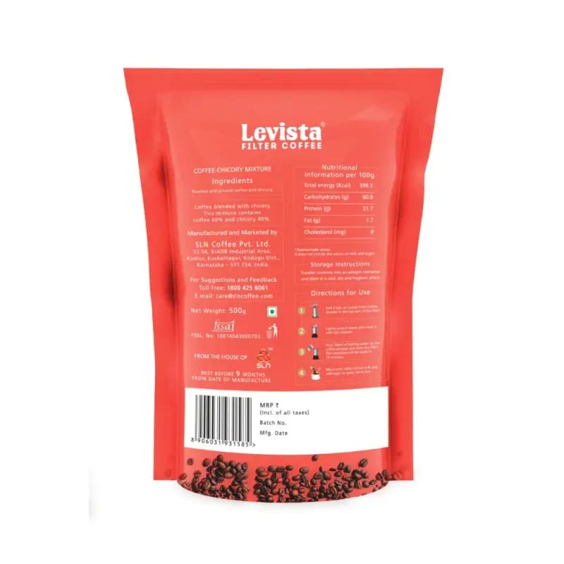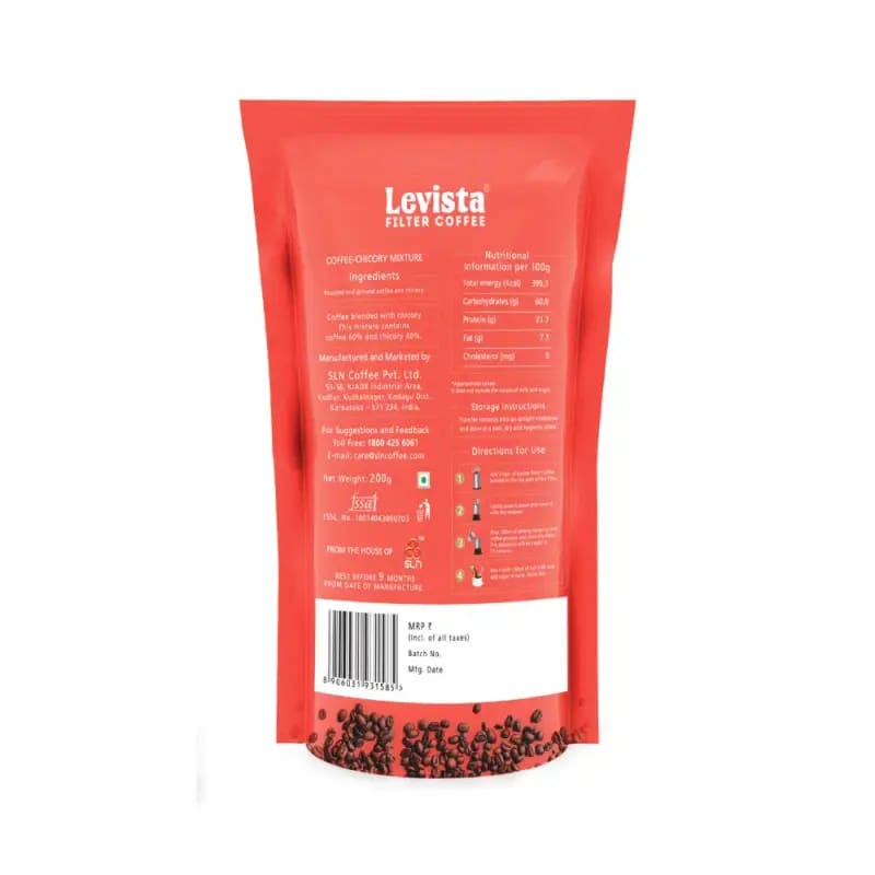 Levista Filter Coffee 60/40 is a perfect blend of 60% coffee and 40% chicory, offering a rich and aromatic South Indian filter coffee experience. Crafted with premium quality coffee beans, it delivers a bold taste and strong aroma, making every cup delightful.