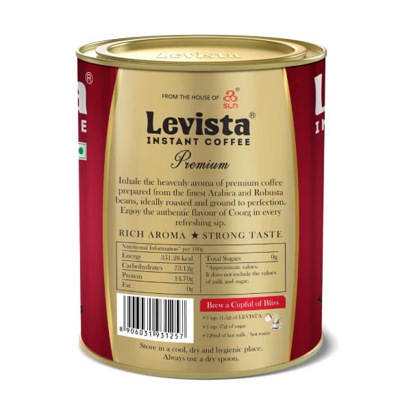 Levista Instant Coffee Premium Can is a meticulously crafted blend that offers an exquisite coffee experience. Made from high-quality coffee beans, this instant coffee delivers a rich aroma and bold flavor, perfect for coffee lovers who seek a premium taste in every cup.
