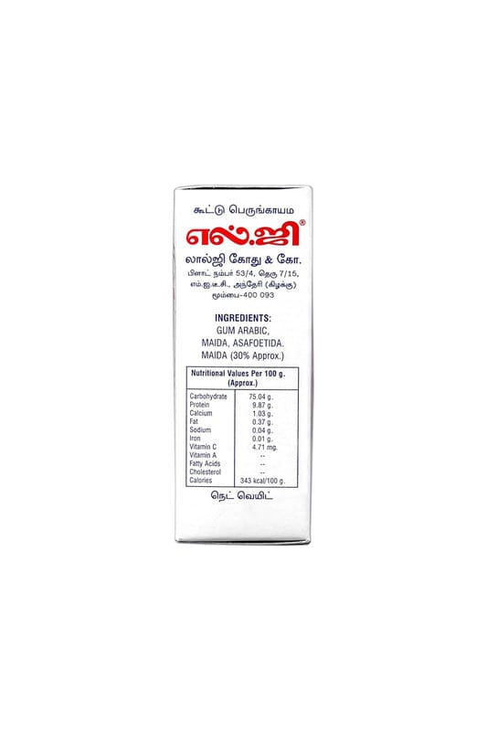 The Lumps produced in Bombay are repacked in Chennai and Kumbakonam for sale in the south of India, where L.G. is used synonymously with hing. While the packaging is representative of the region in which it s sold, the signature LG Hing quality is the same gold standard.LG-HING-PT1