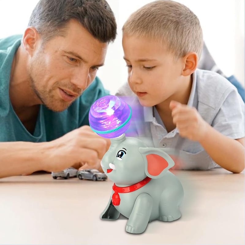 Watch as the elephant walks and spins around, bringing dynamic movement to any play area. The engaging music and vibrant lights add to the fun, making this toy an instant favorite. Crafted from durable plastic, this toy is built to withstand active play and provide lasting enjoyment.