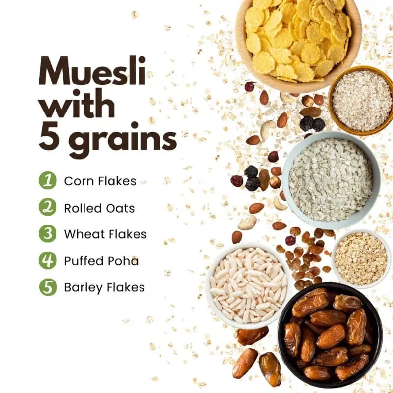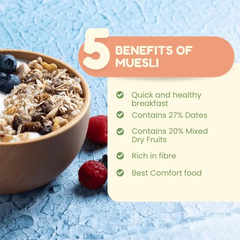 This muesli is a great source of fiber, supports digestion, boosts immunity, and provides long-lasting energy to keep you active throughout the day.