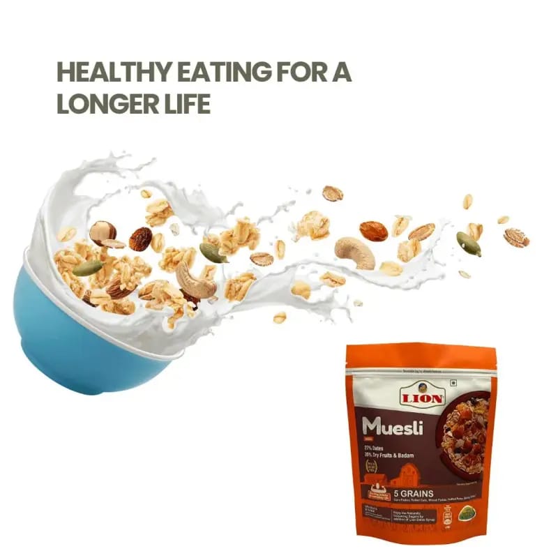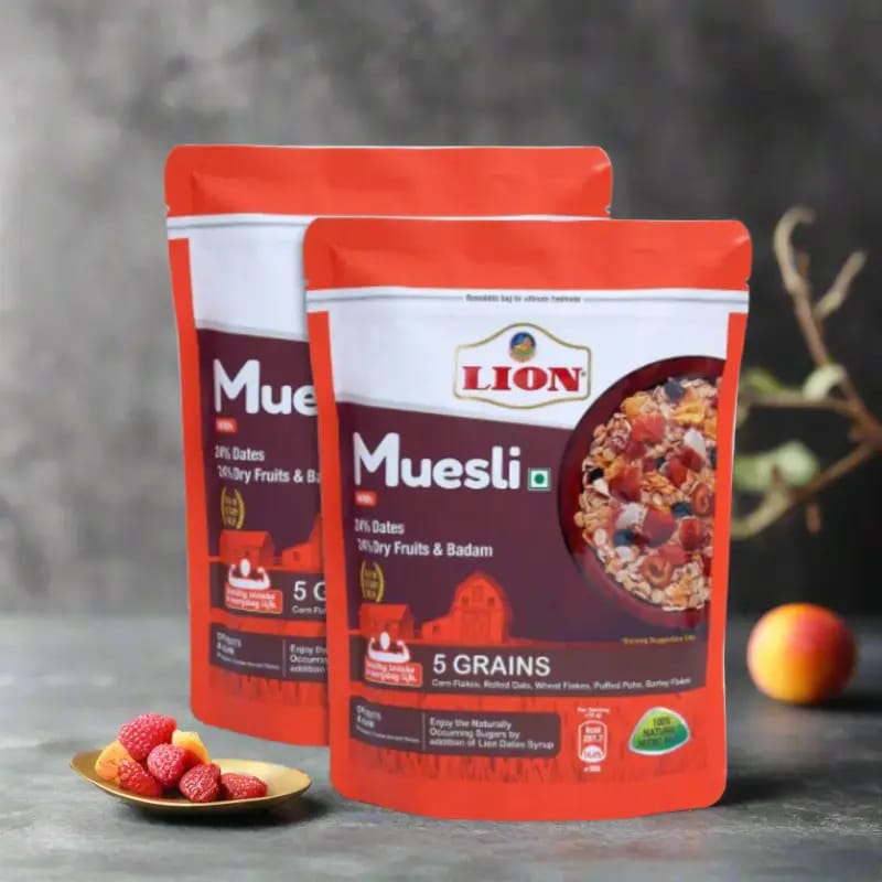 Start your day with the power-packed nutrition of Lion Muesli, enriched with the goodness of premium dates, five wholesome grains, and a delightful mix of dry fruits. A perfect breakfast option for a healthy and energetic lifestyle.