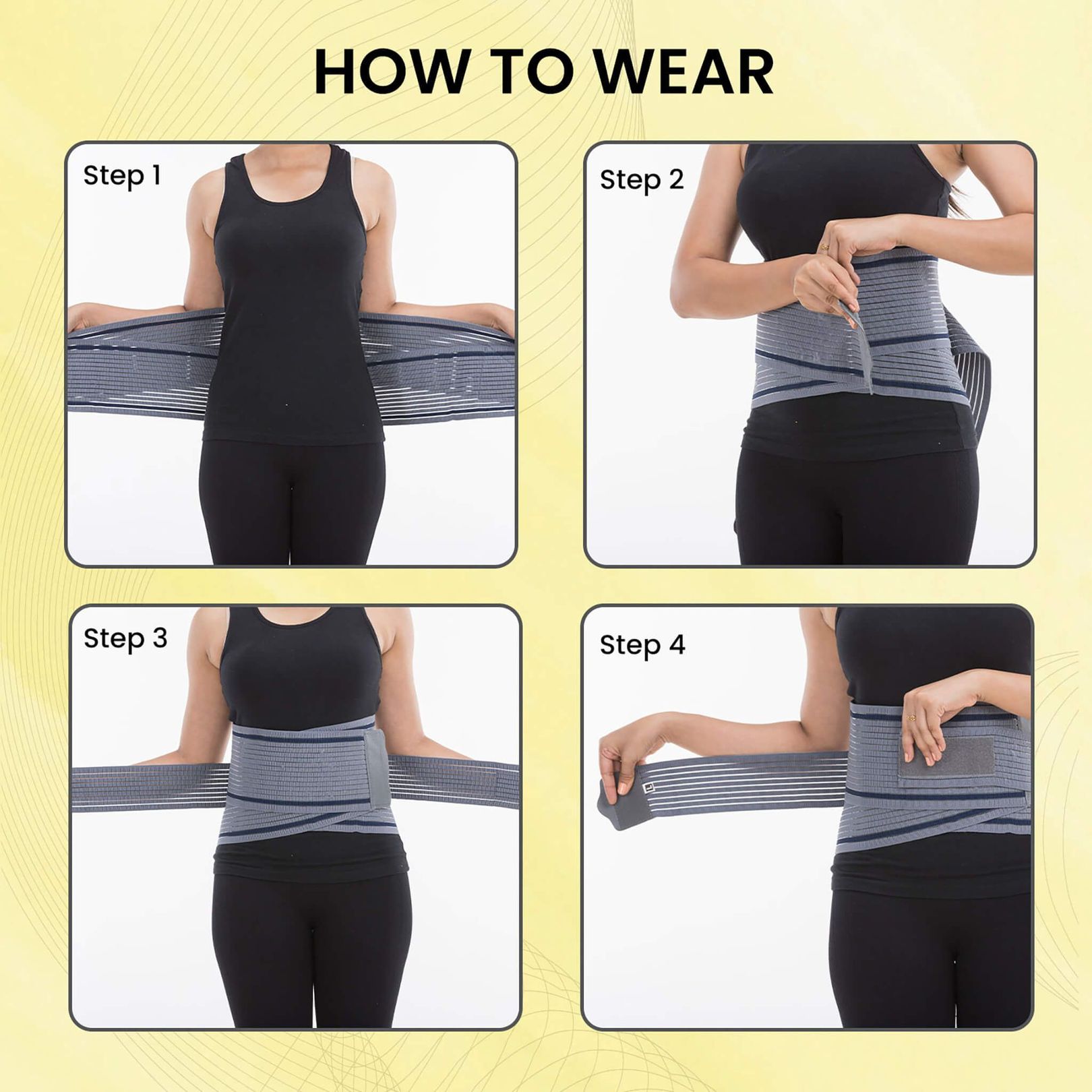 HOW TO WEAR - Place on lower back and stretch the elastic from both the sides to lock in the front. Stretch and lock the loop elastic for additional reinforcement.