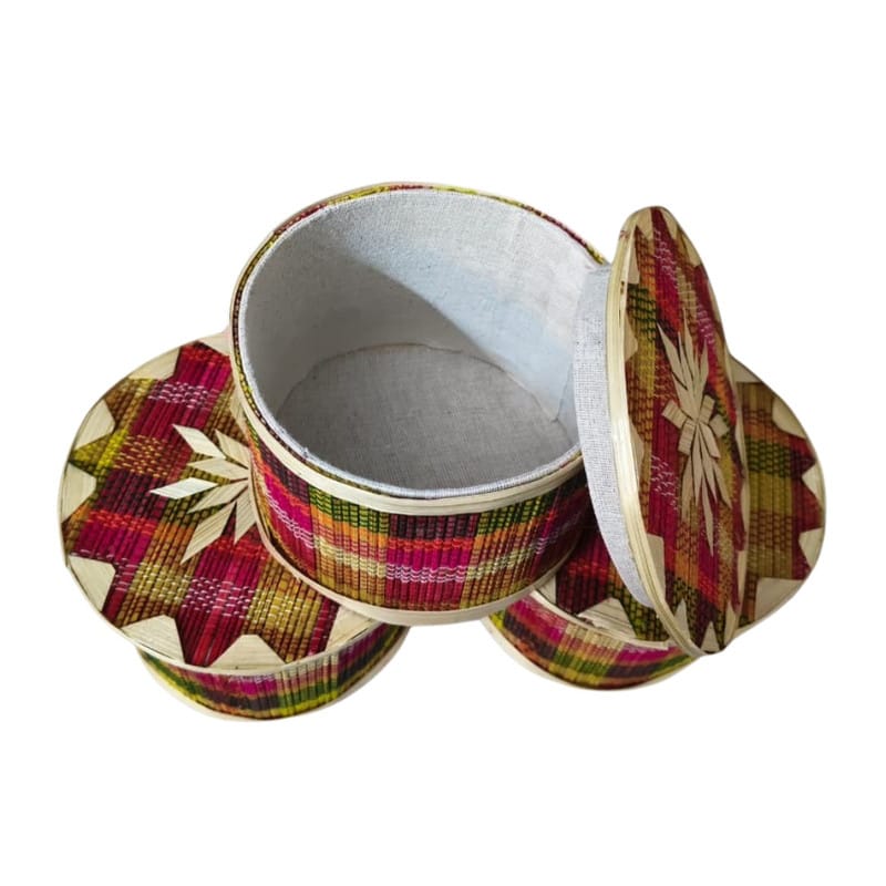 Eco-friendly, handcrafted 5" bamboo gift boxes perfect for jewelry, small keepsakes, weddings, corporate gifting and festive packaging. Set of 3 elegantly finished boxes.