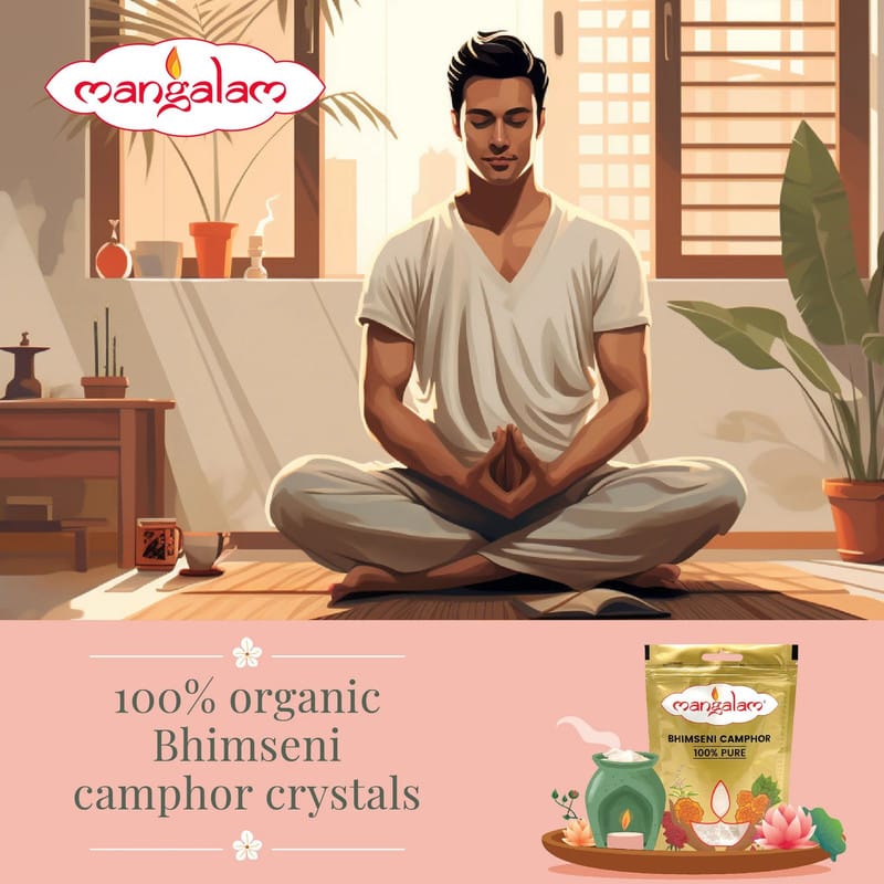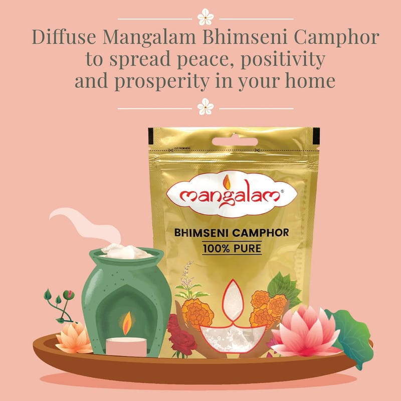 Light a small piece of camphor in a safe holder and let the aroma spread for a calming and peaceful atmosphere.