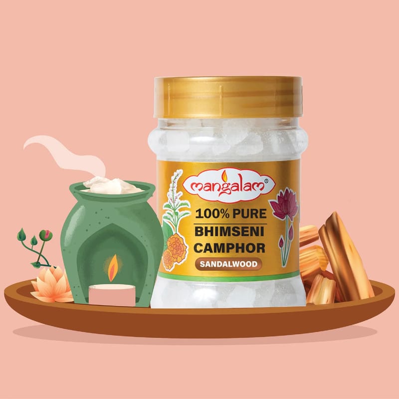 Experience the divine aroma of Mangalam Bhimseni Camphor Sandalwood, a perfect blend of natural camphor and soothing sandalwood fragrance. This premium-quality camphor is ideal for spiritual rituals, meditation, and aromatherapy, creating a peaceful and positive ambiance.