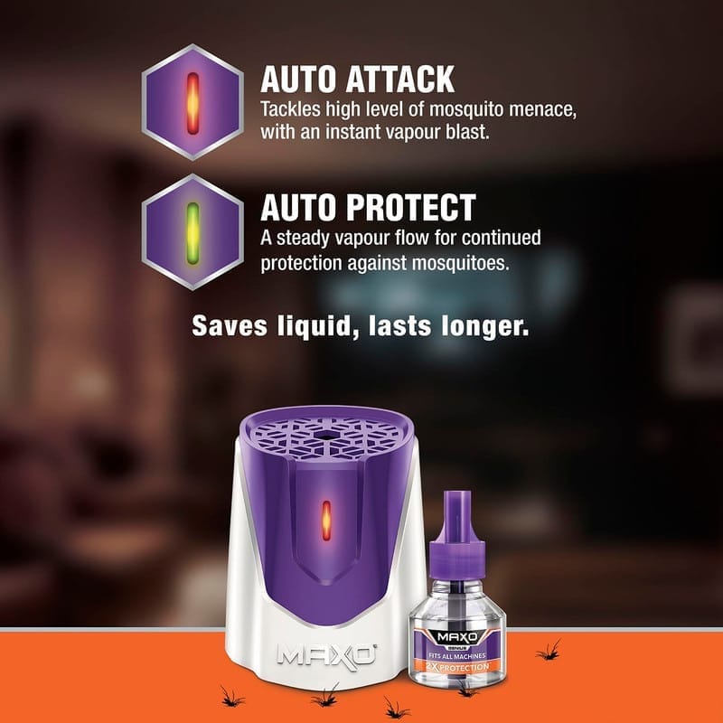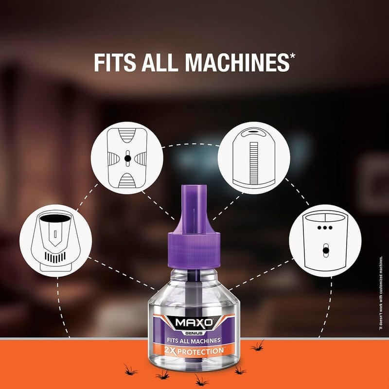 Maxo Genius Combi is a powerful combination mosquito repellent solution designed to provide long-lasting protection from mosquitoes and insects. With its advanced dual-action formula, it ensures a mosquito-free environment, helping to safeguard your family from diseases like dengue, malaria, and chikungunya.