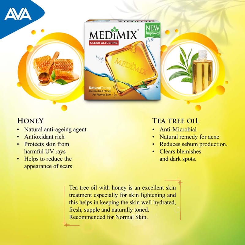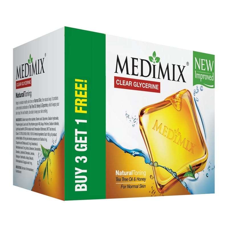 Medimix Clear Glycerine with Natural Toning is a specially formulated soap that helps keep your skin smooth, toned, and moisturized. Enriched with the goodness of glycerine, it provides deep hydration while protecting your skin from dryness. Suitable for all skin types, it also helps to enhance the natural glow of the skin, leaving it soft and supple.