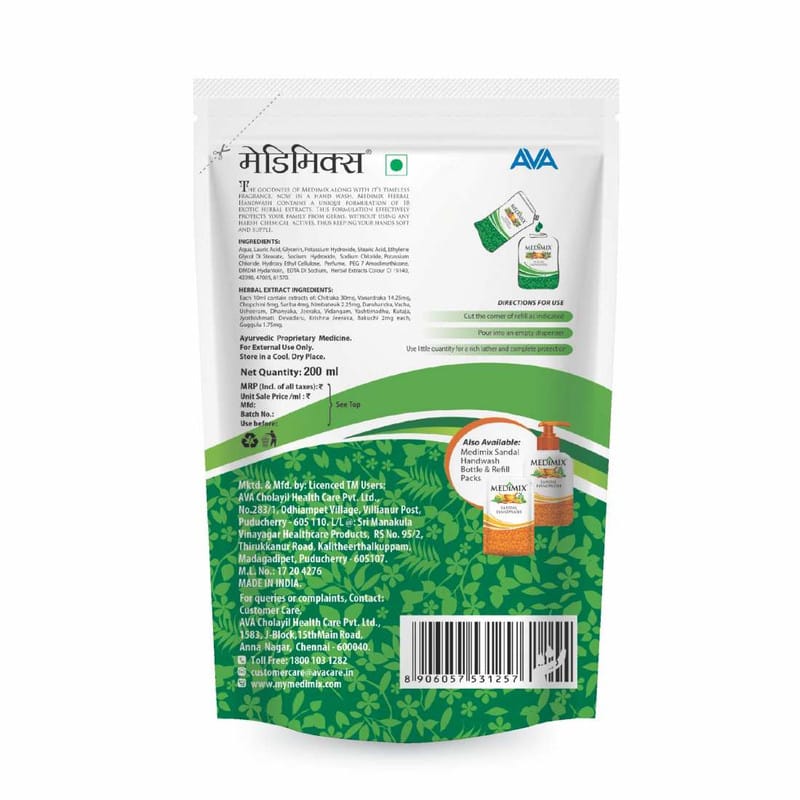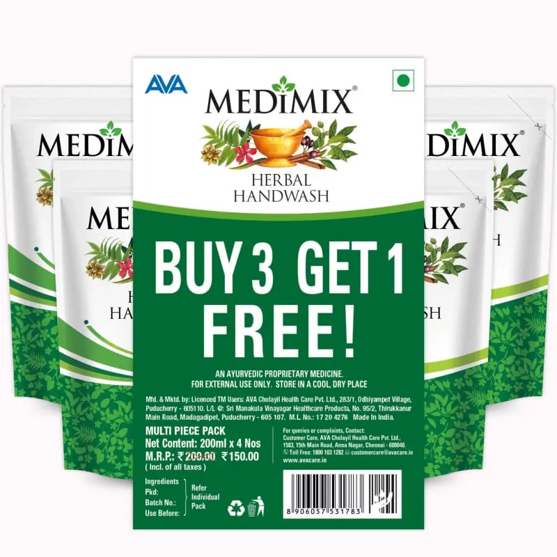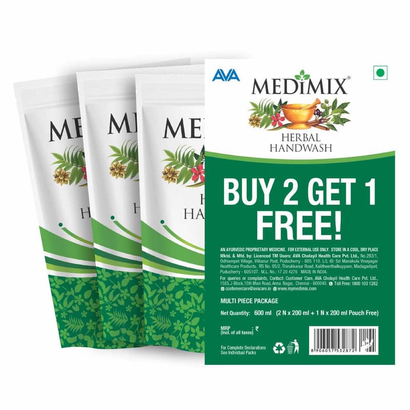 Wet your hands, apply a small amount of Medimix Handwash Herbal, lather, and rinse thoroughly with water.