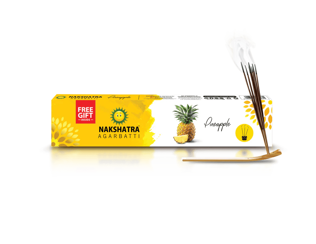 Indulge your senses with the delightful fragrance of Mr. Gold Nakshatra Agarbatti - Pineapple. Crafted with natural ingredients, this incense stick fills your space with a refreshing aroma that uplifts your mood and enhances your ambiance.