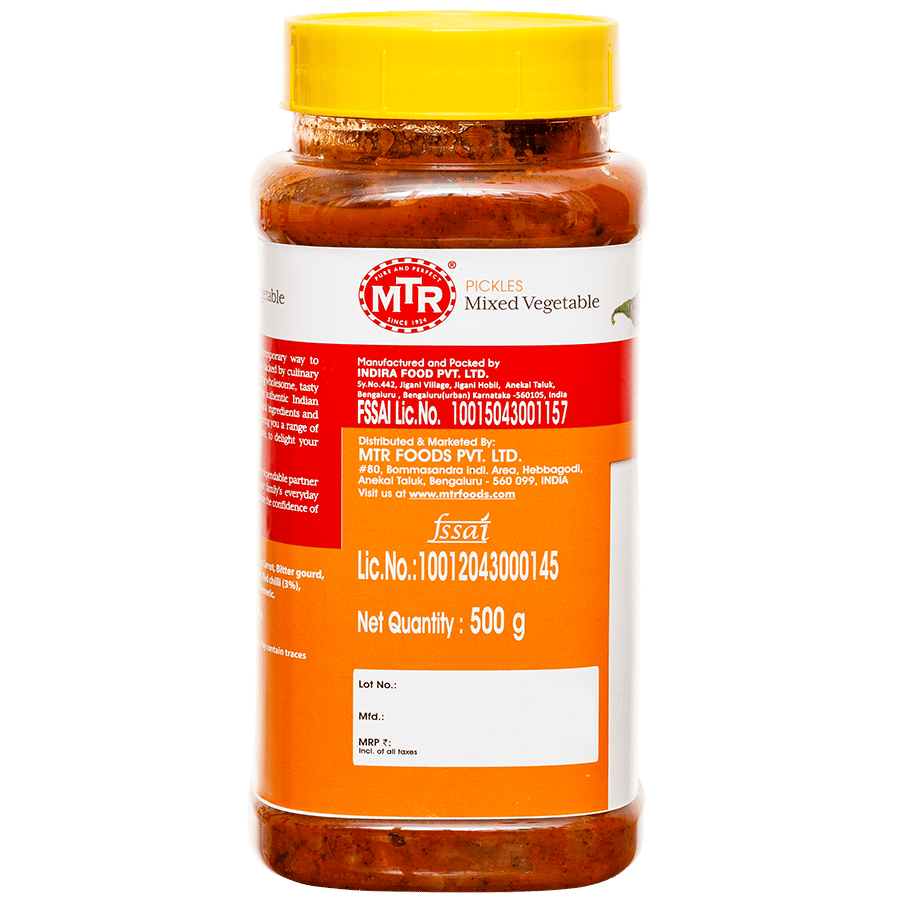 An authentic Indian pickle made from a combination of vegetables and aromatic spices.