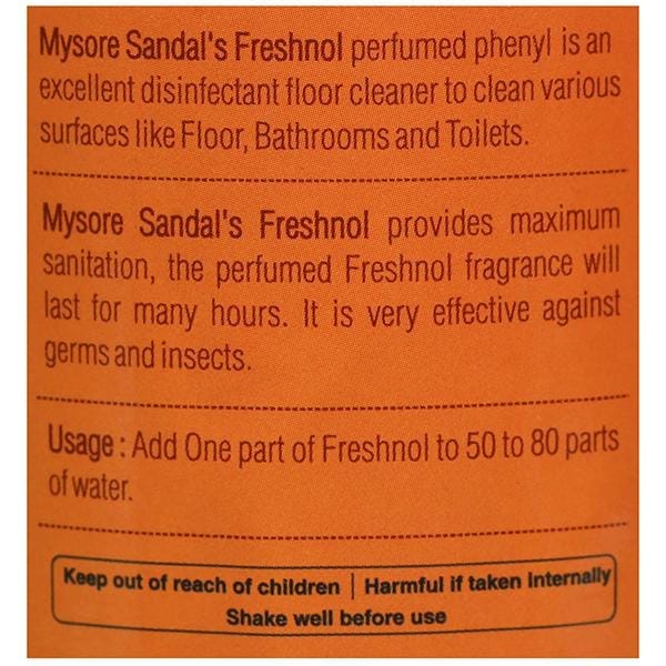 Keep your home clean and fresh with Mysore Sandal Freshnol Perfumed Phenyl Disinfectant Liquid. This powerful disinfectant cleans and leaves a pleasant fragrance of sandalwood.