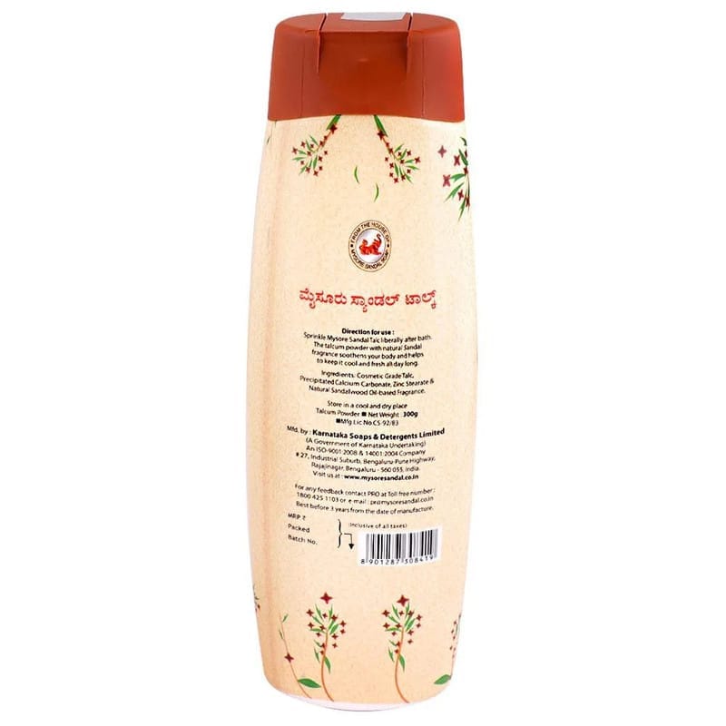 Experience the soothing freshness of Mysore Sandal Talc Powder, crafted with the finest sandalwood extracts. Ideal for daily use, this talc powder keeps your skin cool and fragrant throughout the day.