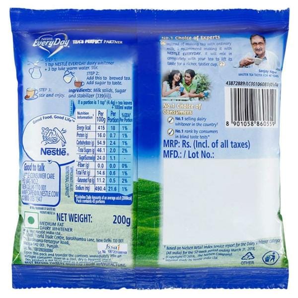 There's no greater joy than finding a milk powder that works as a healthy substitute for milk with zero compromises in the natural taste. Nestle EveryDay Dairy Whitener made from wholesome milk adds the right texture and taste to your tea, cakes, cookies, sweets, and smoothies. Buy this product online today.