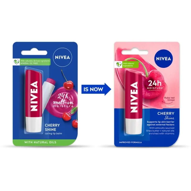 Apply Nivea Cherry Shine Lip Balm generously on your lips as needed, especially during dry or cold weather, for soft and protected lips with a beautiful cherry shine.