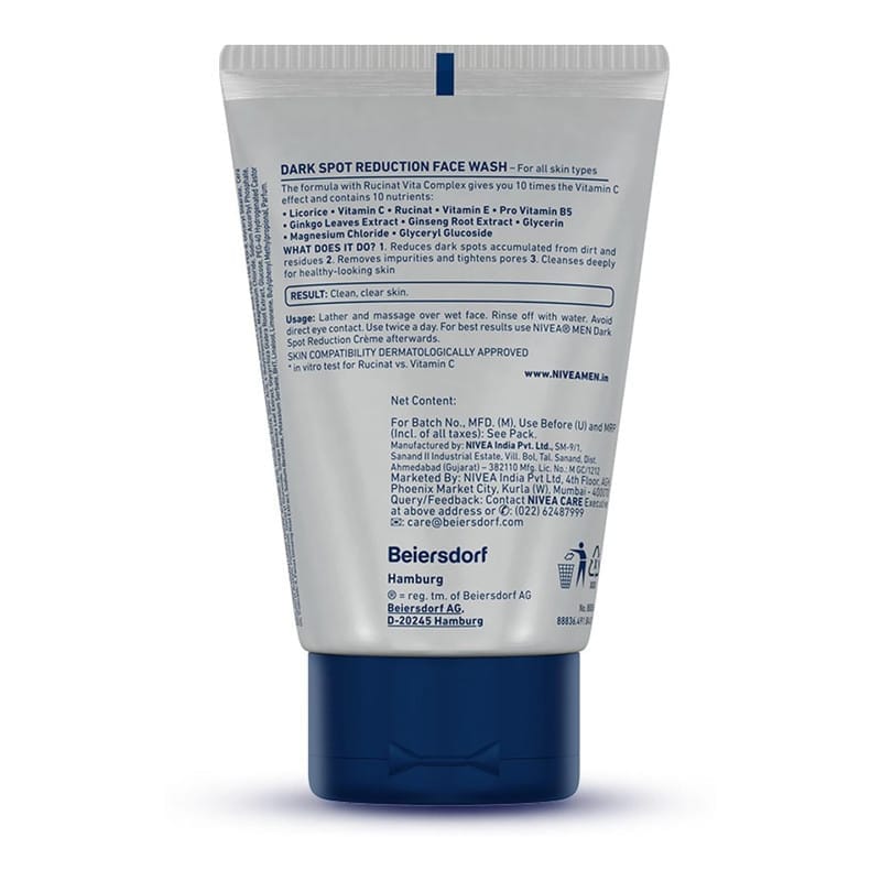 Nivea Men Dark Spot Reduction Face Wash is specially designed for men with dark spots and uneven skin tone. It effectively cleanses your skin, removing dirt, excess oil, and impurities, while reducing dark spots and giving your skin a fresh and even appearance.