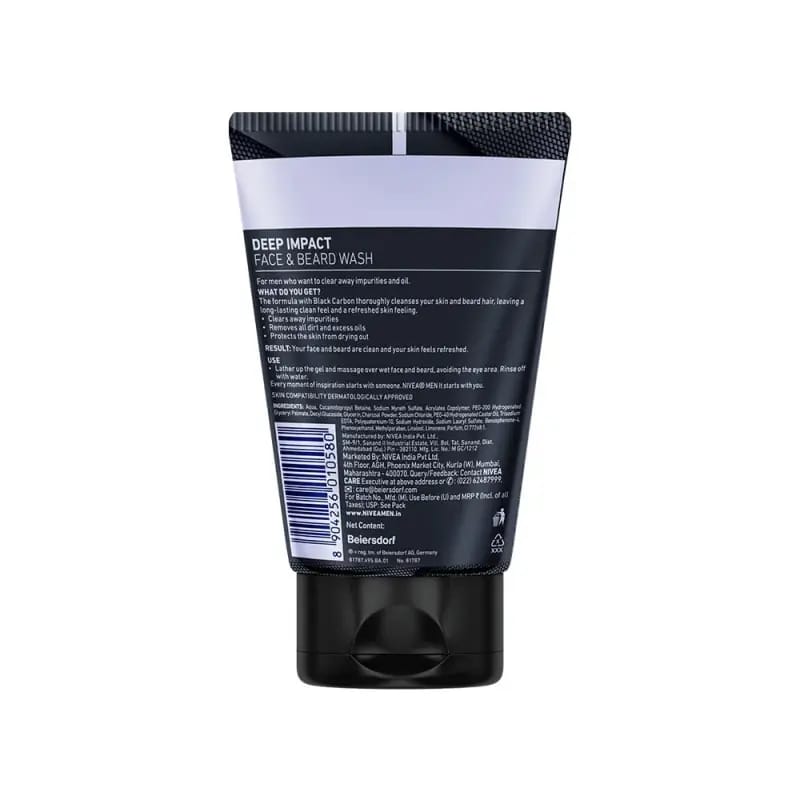 Experience a deep cleanse with Nivea Men Deep Impact Face Wash. This specially formulated face wash for men is designed to effectively remove dirt, oil, and impurities, leaving your skin feeling fresh and energized. Its rich formula with activated charcoal deeply cleanses your skin, giving it a refreshed, matte finish without over-drying.