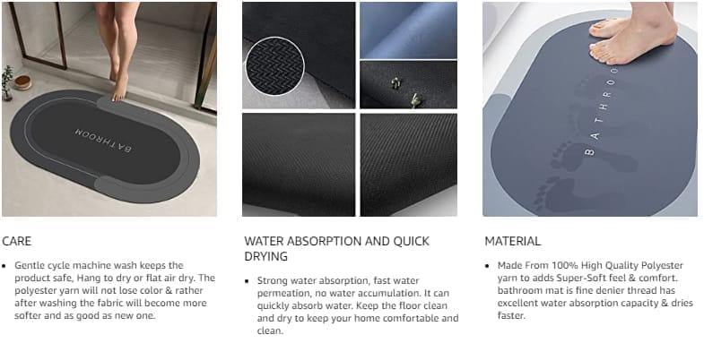 COMFORT AND CARE IN MIND - Our bathmats are luxury mats that have been made with your comfort and care in mind. They are extremely soft and have a plush feel to them; they are also quite absorbent and will keep your feet toasty and snugly dry. This bathroom mat's enticing designs will give your bathroom a fresh look. Bathmats are the ideal combination of comfort and design for refreshing your bathroom.