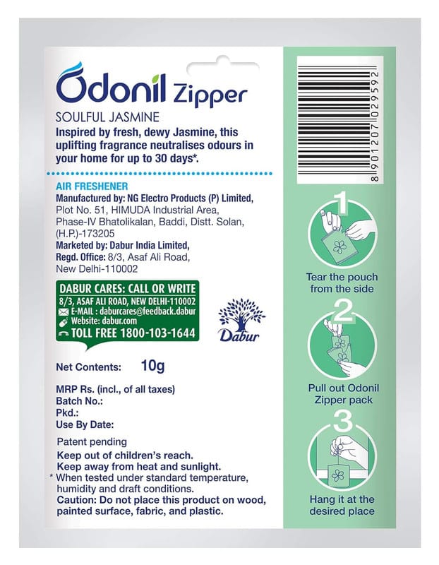 Odonil Nature Zipper Air Freshener - Soulful Jasmine, 10g Pack