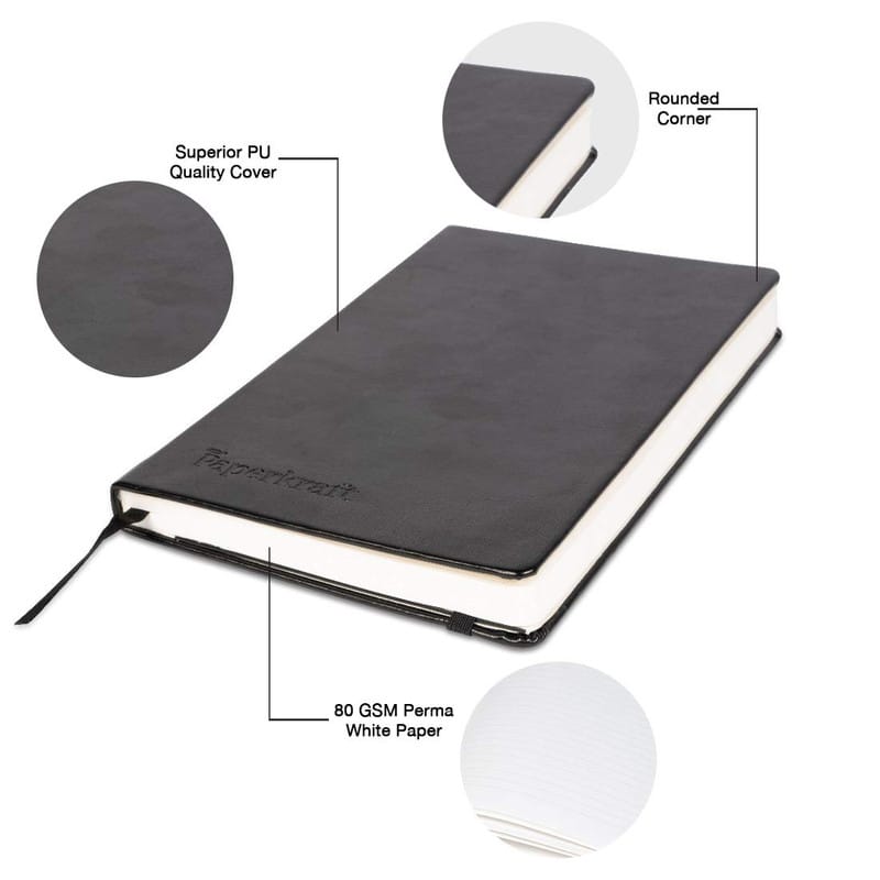 Paperkarft, Signature Series - Hard PU Ruled, Black Cover with White Pages with Band - 240 pages, 210mm x 133mm