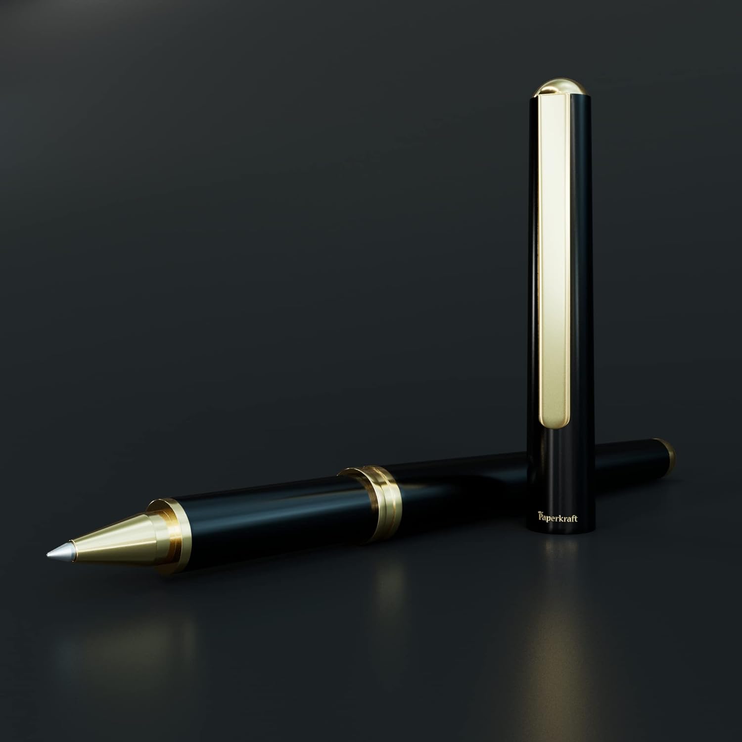 Paperkraft Callista Ceramic Roller Ball Pen, designed in Japan and crafted from metals like Brass & Aluminium is all about presence, style and sophistication. This luxury range of pen comes in a Classic Black-and-Gold Tone Finish with a rust-free Ceramic Roller Ball tip to deliver a stable and smooth writing experience. The pen also comes in a pre-packed magnetic box making it suitable for gifting purposes.