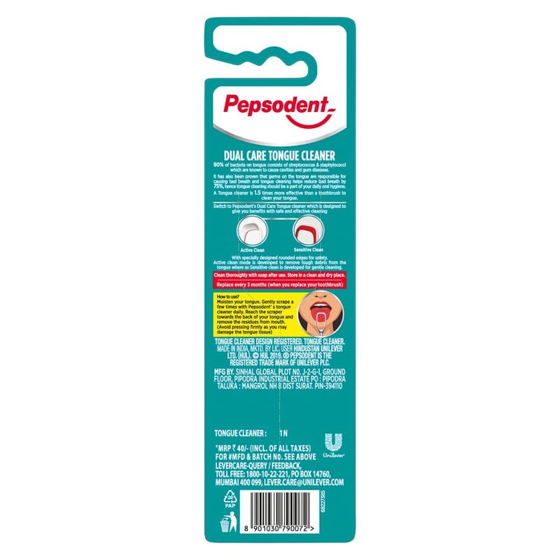 Pepsodent Dual Care Tongue Cleaner is an oral hygiene device designed to clean the bacterial build-up, food debris, fungi, and dead cells from the surface of the tongue. So what are you waiting for? Buy the product online at the best rate, right here!