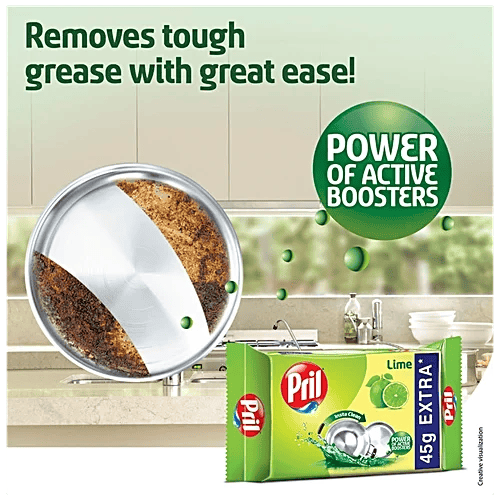 Pril Dishwashing Bar combines powerful grease-cutting technology with a refreshing fragrance to give your utensils a sparkling clean finish. Each bar offers an innovative dual-layer formula (65g main bar + 45g booster) that effectively removes tough grease, oil, and food residue even with minimal scrubbing.