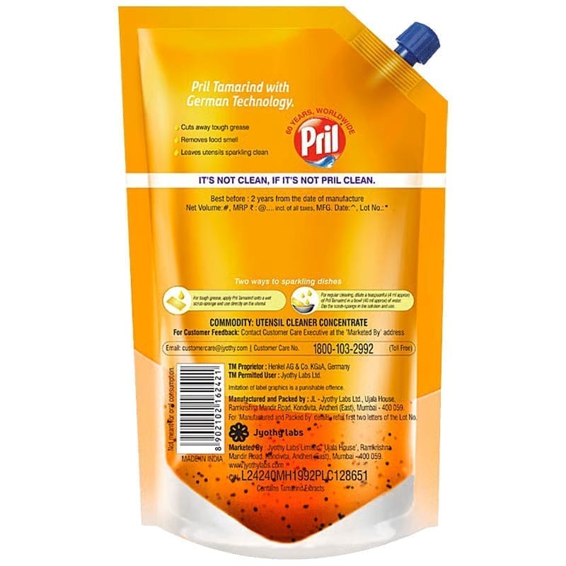 Pril Dish Washing Liquid Speckles Tamarind is your kitchen's best companion for tackling tough grease and stubborn stains. Infused with the natural power of tamarind, it not only cleans effectively but also leaves your utensils smelling fresh and hygienic.